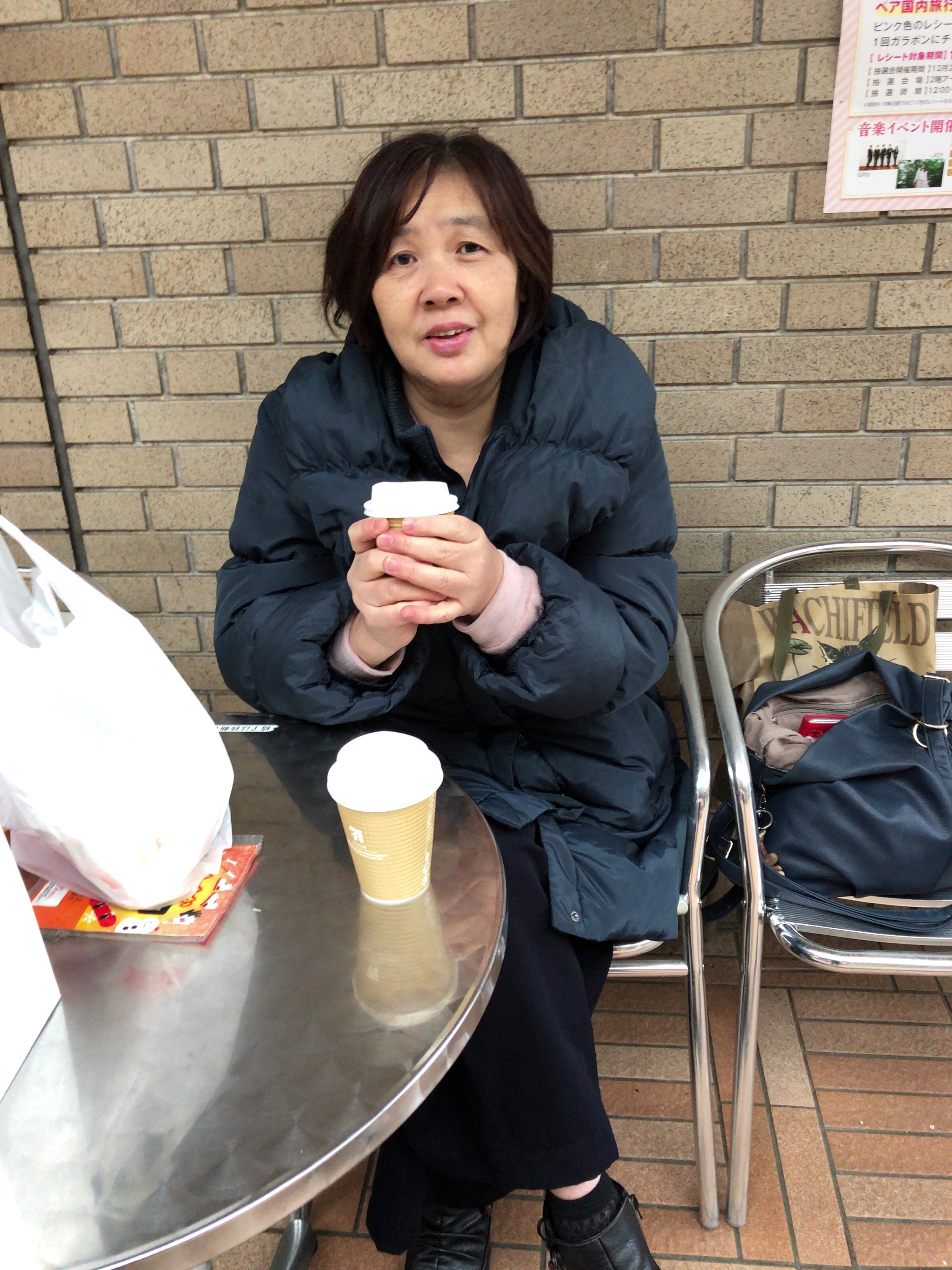 ドトールの前でセブンのコーヒーを飲んで温まります… テモテ