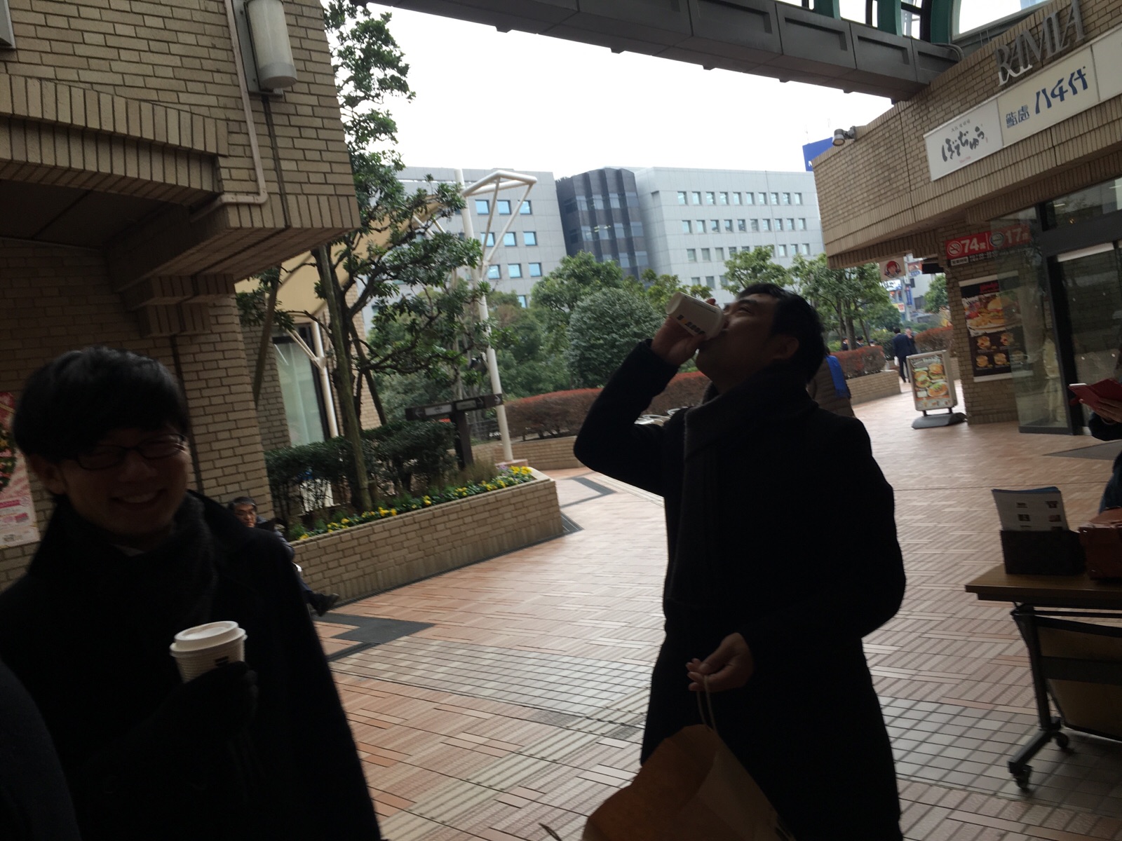 隣がコーヒーショップなので、みんなで温かい飲み物を。 感謝です。 Kayano