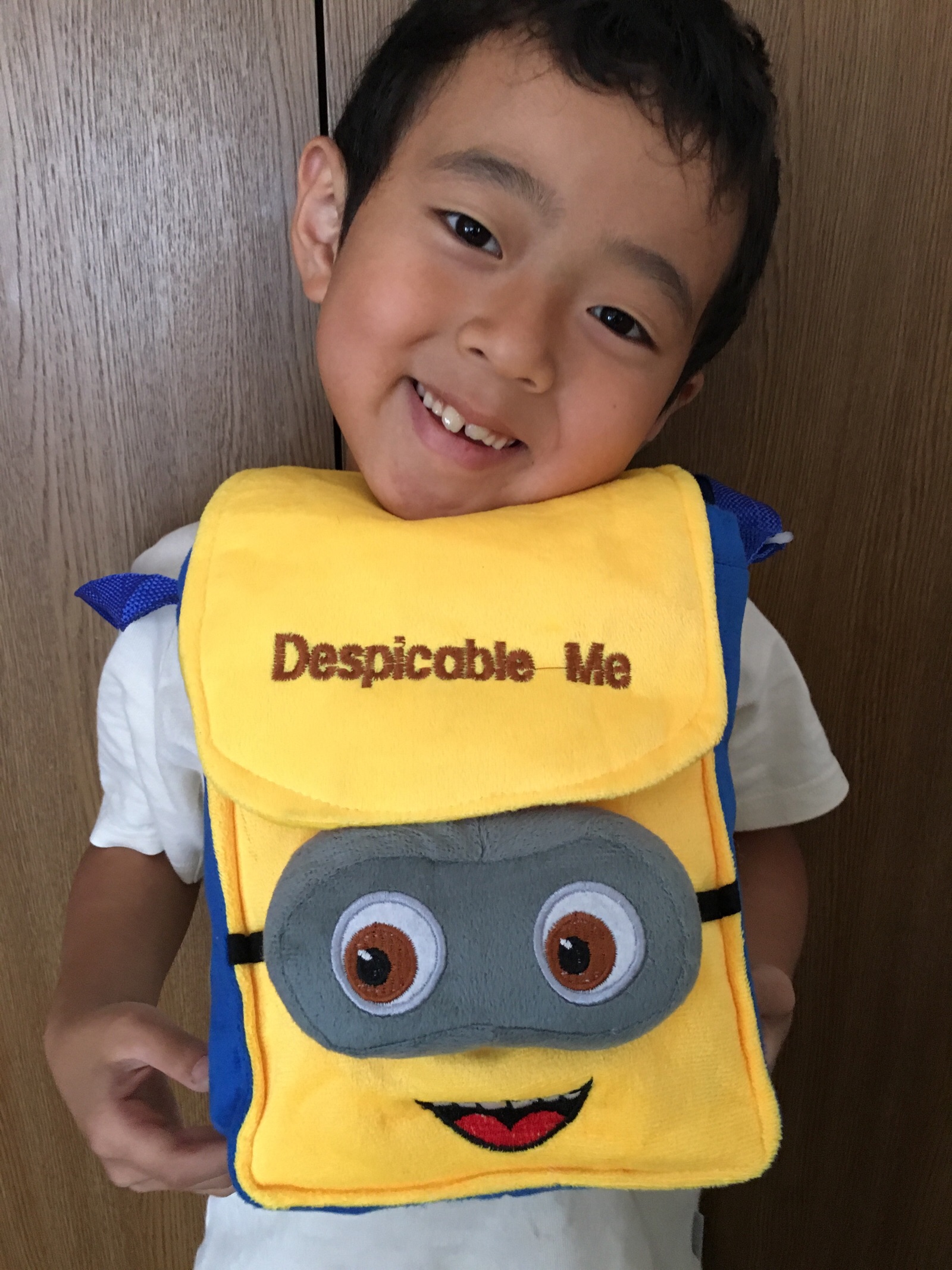 みんな揃ったので、これから池袋に向かいます(^-^) 写真は、去年の誕生日サラちゃんにもらった次男に似ているミニオンバック(笑) 子供キブツの衣装が入ってます♪ Truth Akemi