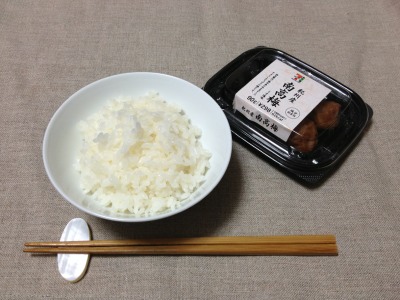 「アイスクリームなんかダメに決まってるじゃない!油を使ってない物を食べて!」と先生にキツく言われたので、梅干しゴハン。