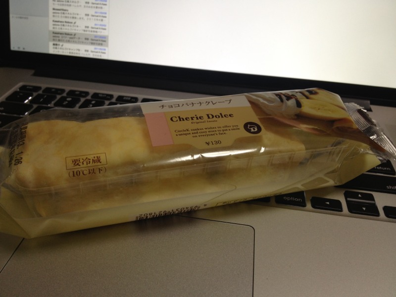 今日もちょっと遅くまで作業を。 ということで頑張りスイーツを、いただきます! チョコバナナクレープ!これは中学生くらいから食べているような。 Samuel