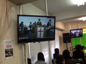 オンライン礼拝をiPadで見ています! すっごく綺麗に映ってますね!