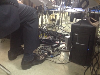 There are many cables around Mr. Obata.