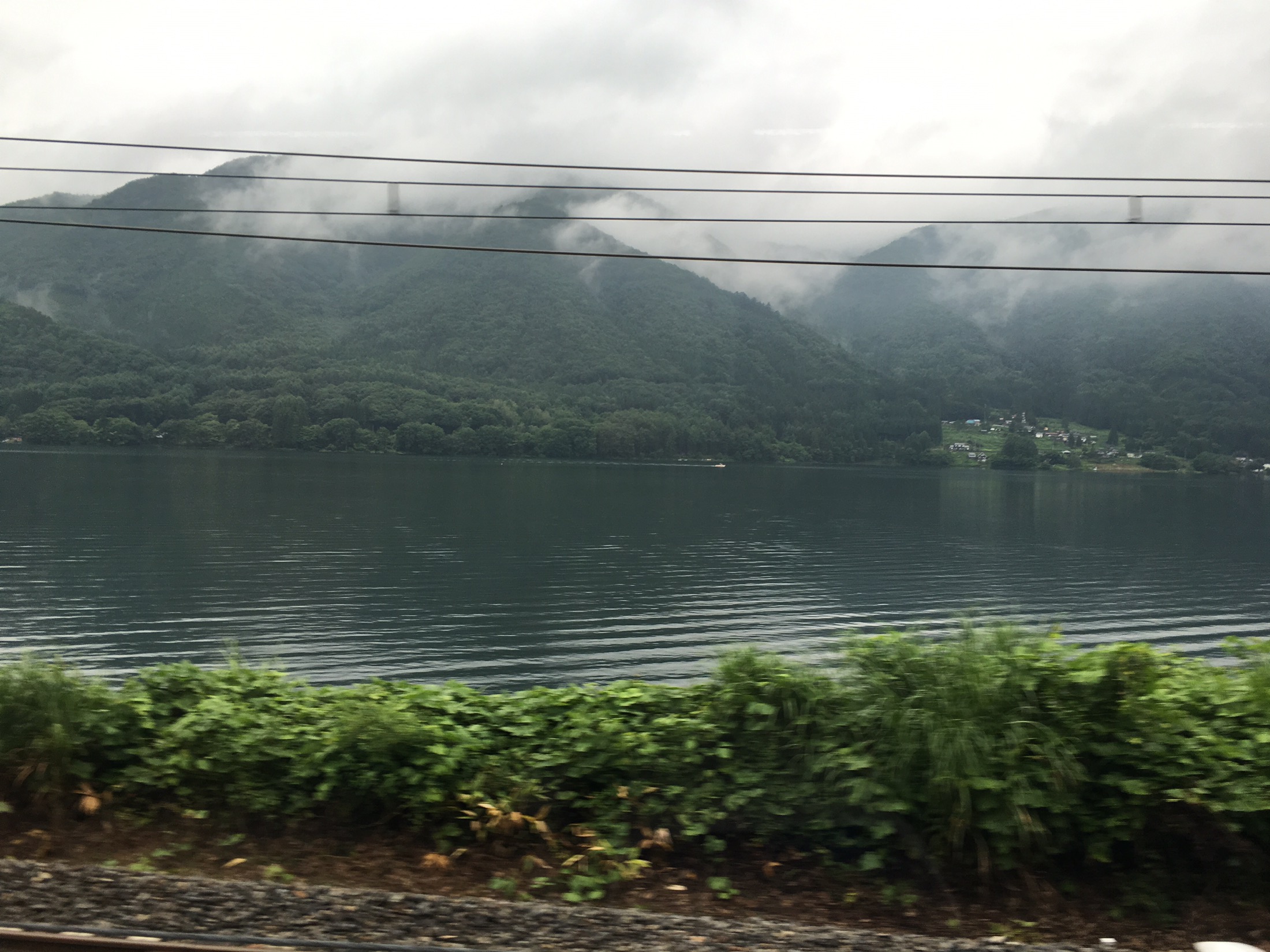 お昼ごはん終わり、またバスに乗り込みました。今、辰野トンネルを抜けました。