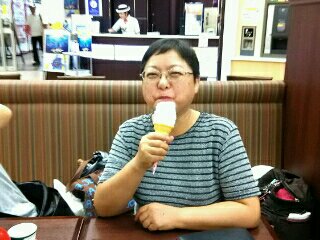 食後のデザートにソフトクリーム。 嬉しそうですねー。