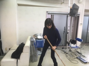 かおりちゃんもお掃除中〜