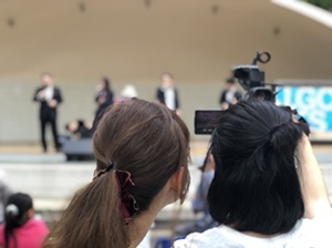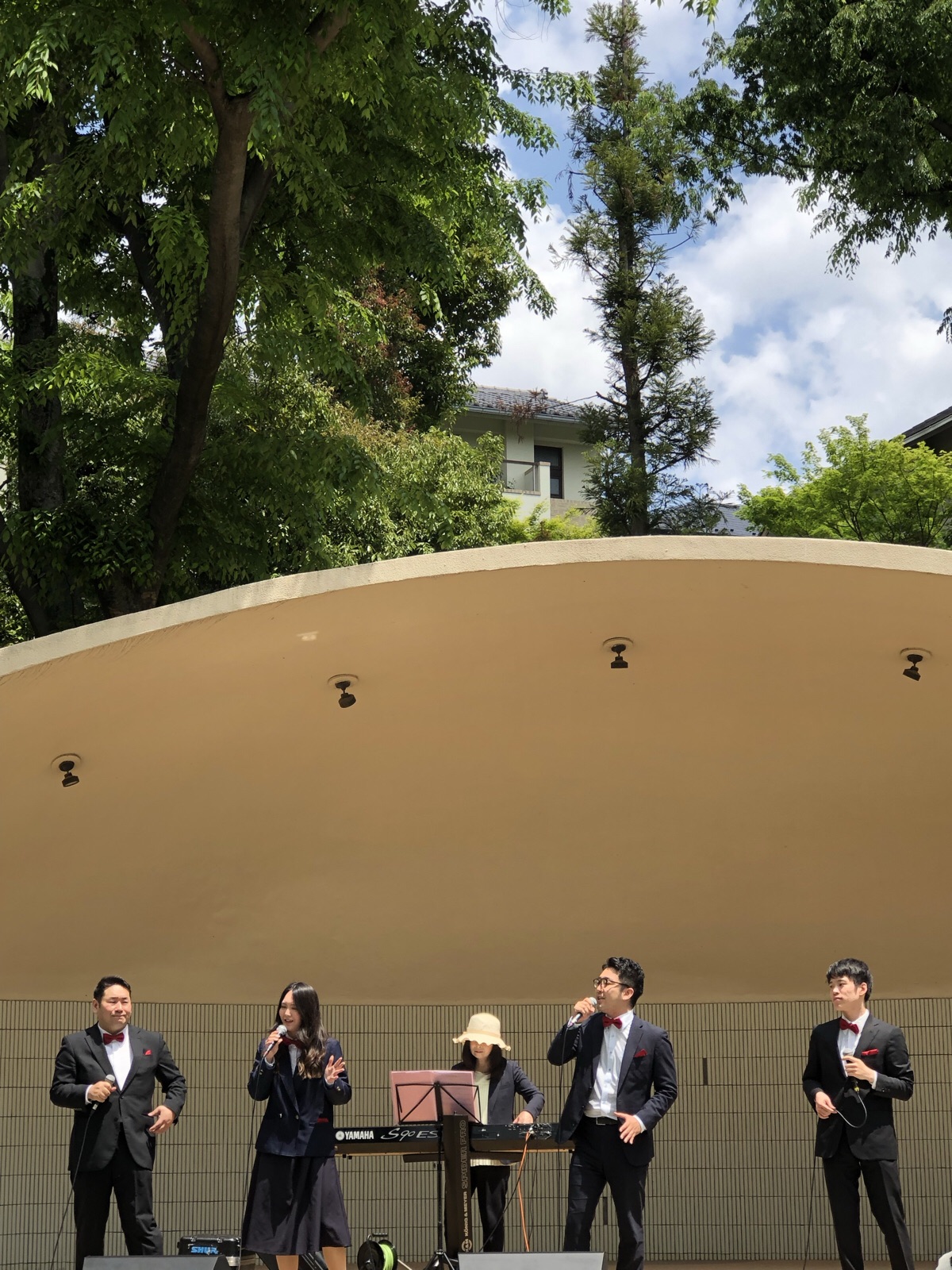 開演前からベンチに座っている方々がたくさんいます。 テモテ