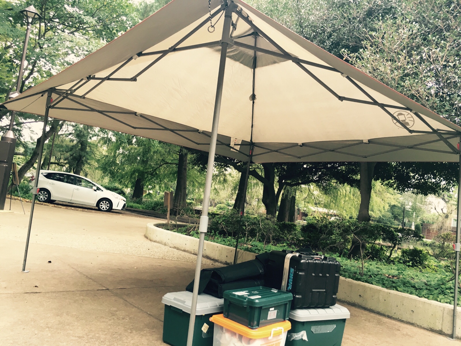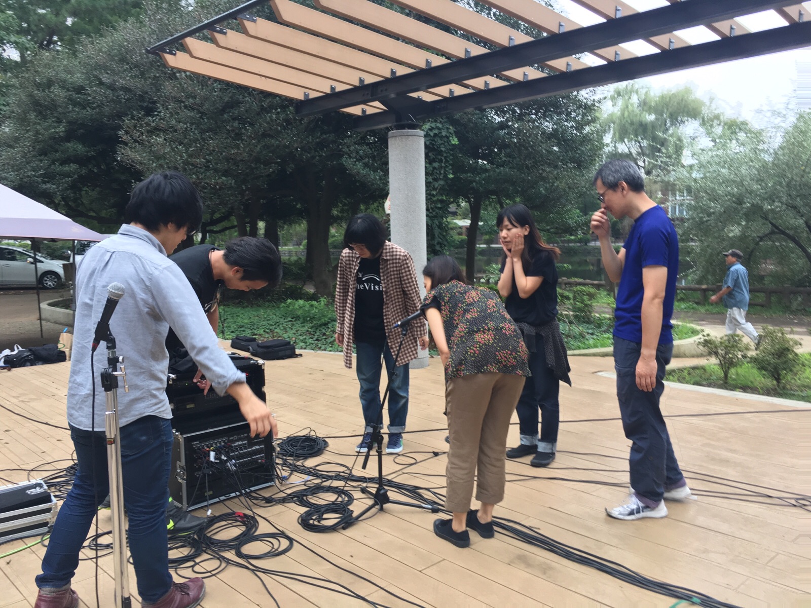関係者到着して来ています。 都内の学校の運動会は延期になっているようですが、 野外ステージ周辺は、FESがしやすい天候になって来ています。 satoko