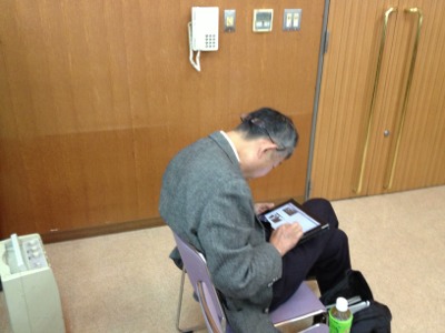 After carrying stuff down from our car, we enter the meeting room.