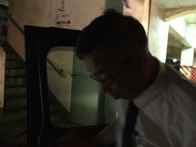 Pastor Nagatou is checking the program! Today we went to Okinawa city in a great hurry, but we relaxed to have arrived here more than 30 minuits!