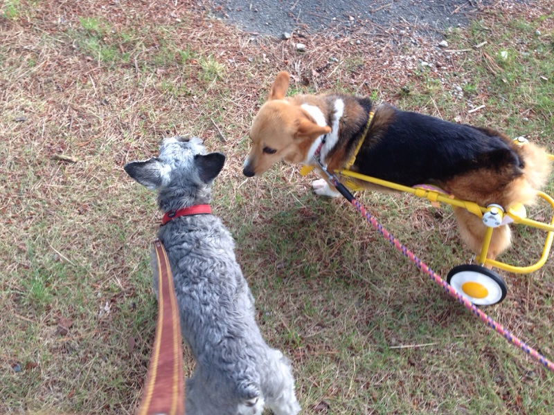ばったり。 近所のマロンちゃんに会いました。 マロンちゃん、後ろ足が不自由なのですが、器具を付けて上手に歩けるようになりました。 名古屋