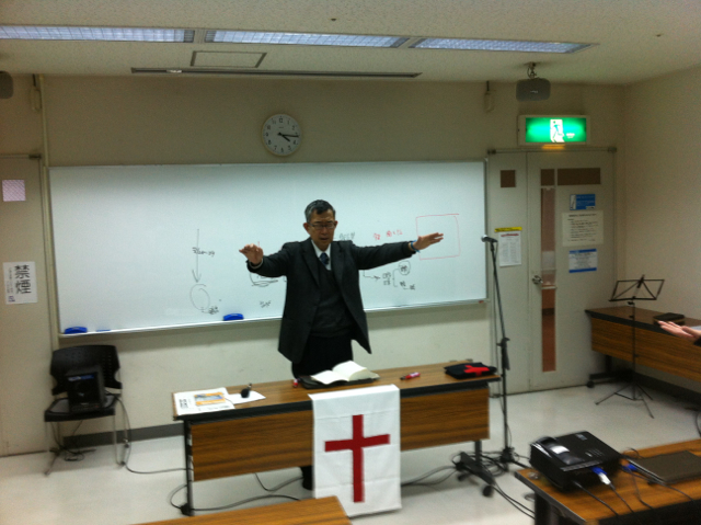 聖会会場の入口には看板がありました。かいかんの方が作って下さったようですが、聖書に十字架、そして楽譜まで描いてあります。 john