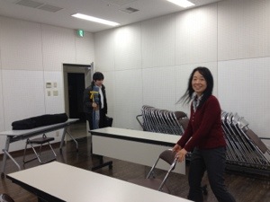 京都カリスマ聖会の会場は長岡京市中央生涯学習センター3階リハーサルスタジオ1です。 京都教会の方々か準備中です。 john