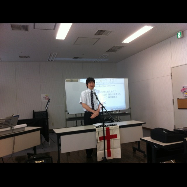 京都シオンカリスマ聖会スタートです。 野中牧師は半袖です。(^_−)−☆ 本人曰く、このシャツが1番綺麗だったそうです。 john