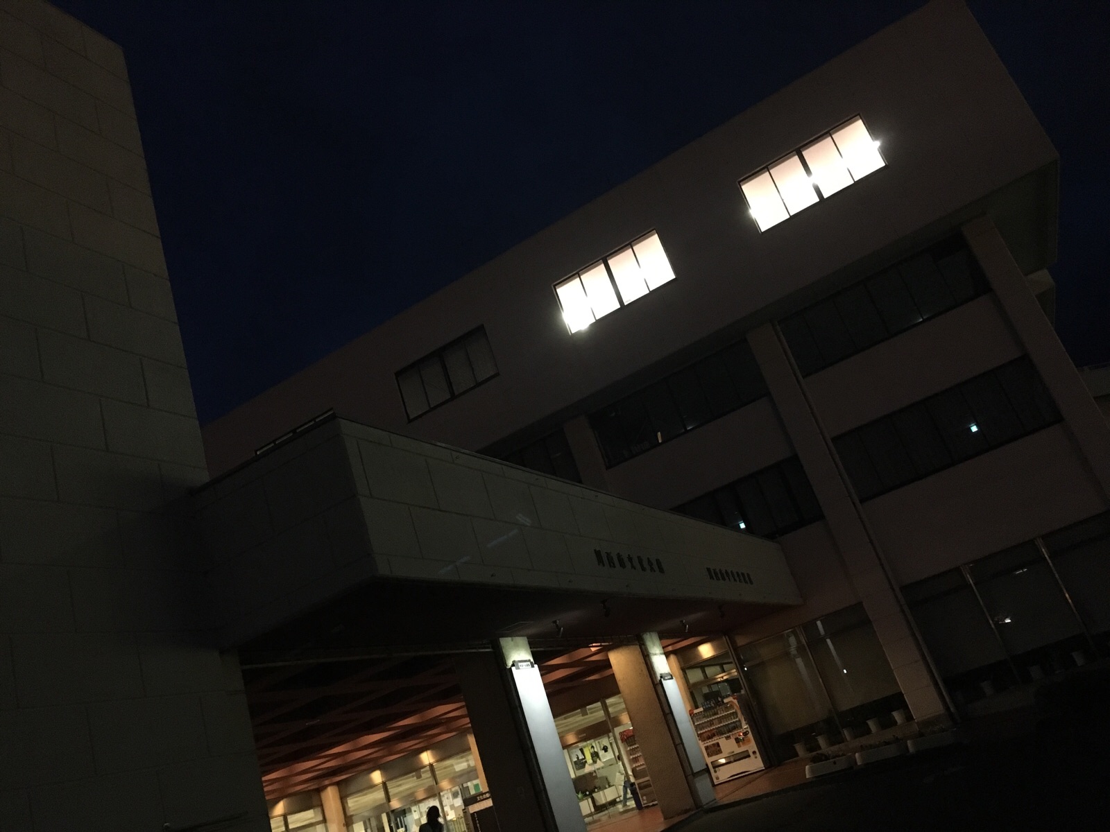 すっかり真っ暗です! 電気が明々と付いてるあそこが練習場所です! 神戸 shion