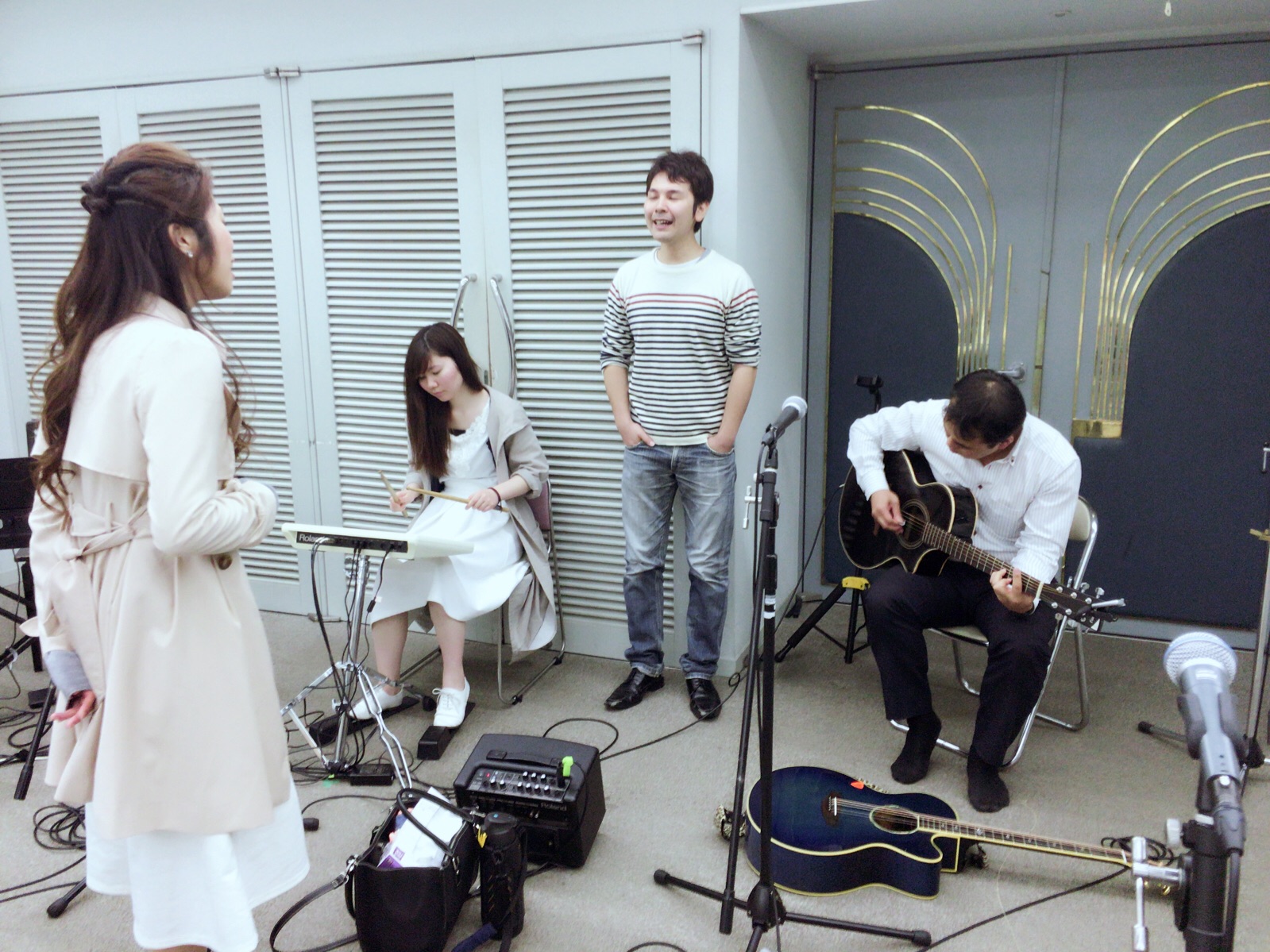サウンドチェックの後に少し練習をするCielさん!!ヒロくんにギター弾いてもらってます(o^^o) 神戸 ルツ