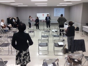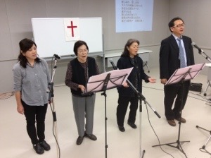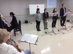 楽譜を見ながら、賛美します。