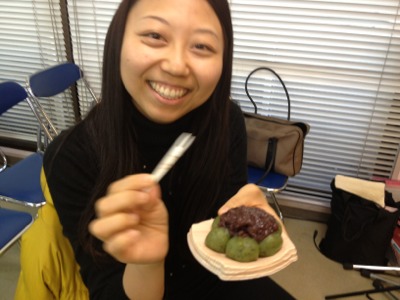 輝美ちゃんがおいしそうに草団子を食べていました。 伊禮さんにもらったそうです。