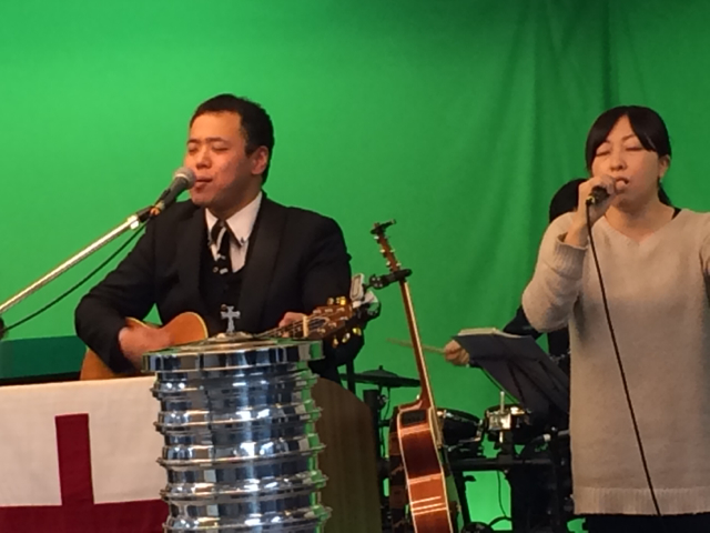 第一礼拝がスタートしました! 賛美リーダーは、ジョセフ前田さんです。