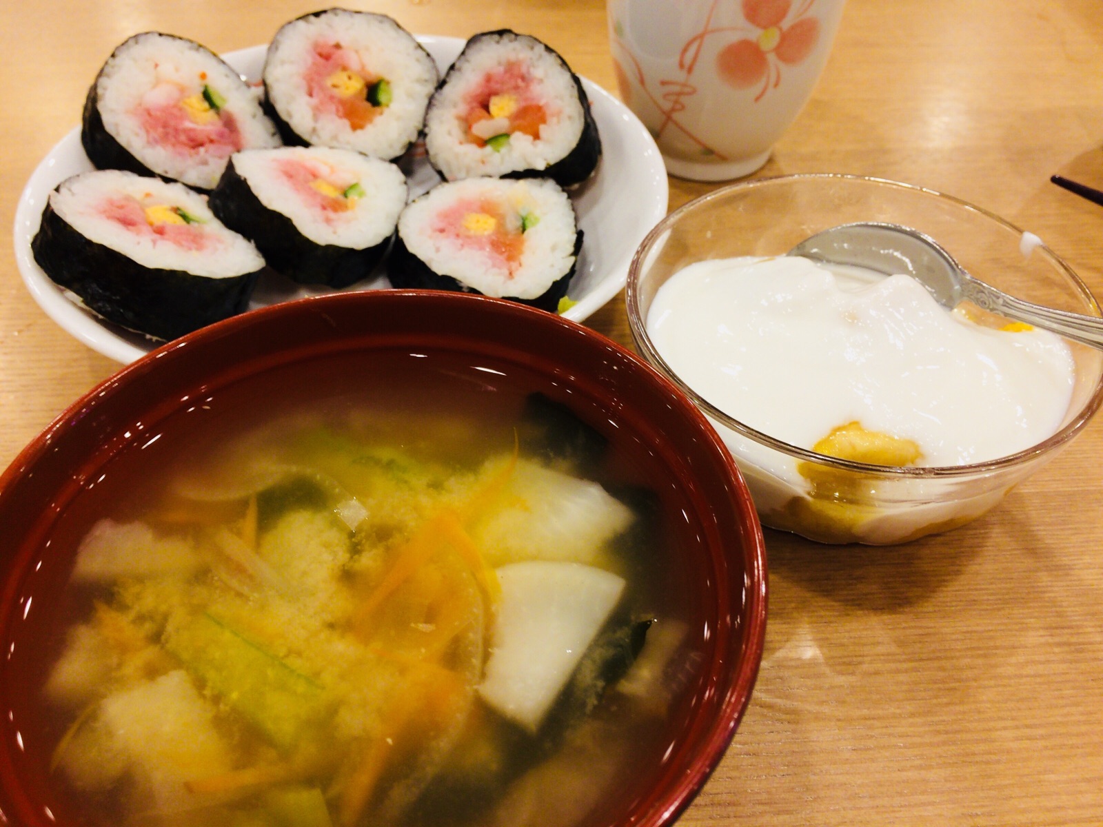 これでは足りないと思って、冷蔵庫にひき肉と野菜が少しあったので、オムレツを作ろうとしたら、皆にいらないと言われましたー。 仕方ないので具沢山味噌汁にしました。 Hyssopミカエル