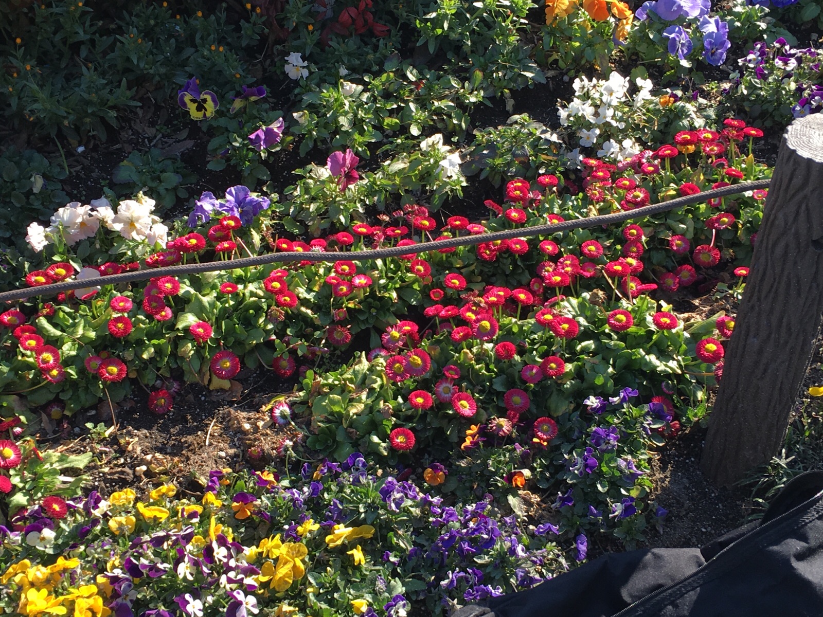 今日は風邪ひきのため来れないヨハネ君、 日が陰ってきたのでお花畑の前に移動です。