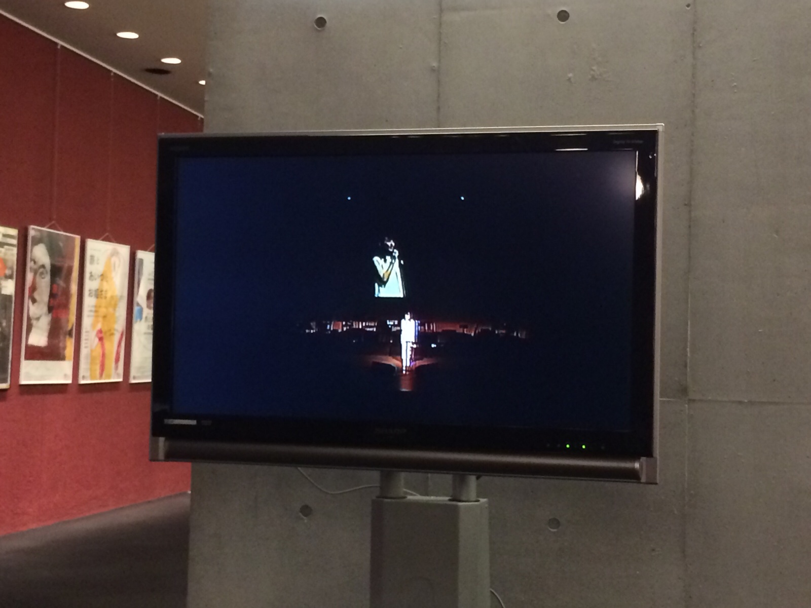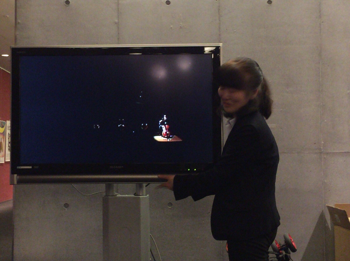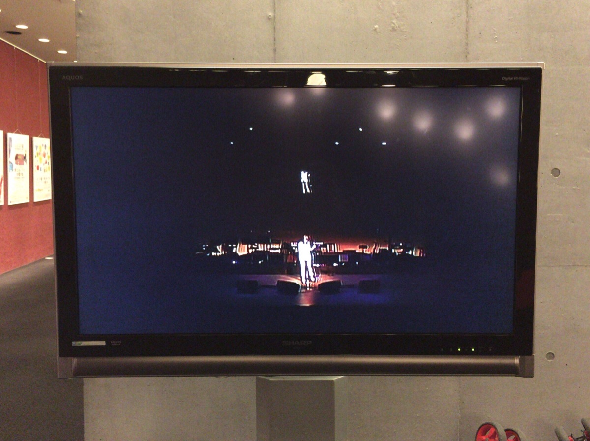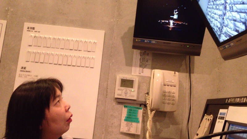 加藤さんが、ロビーで奉仕しているスタッフのために、モニターの調整をしてくださっています。