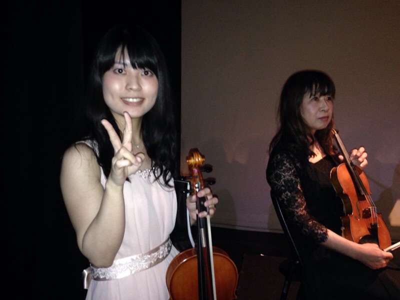 沖縄出張中のゆうこちゃんblessでビオラ担当です♫仲良しのバイオリンの北岡さんと2ショット
