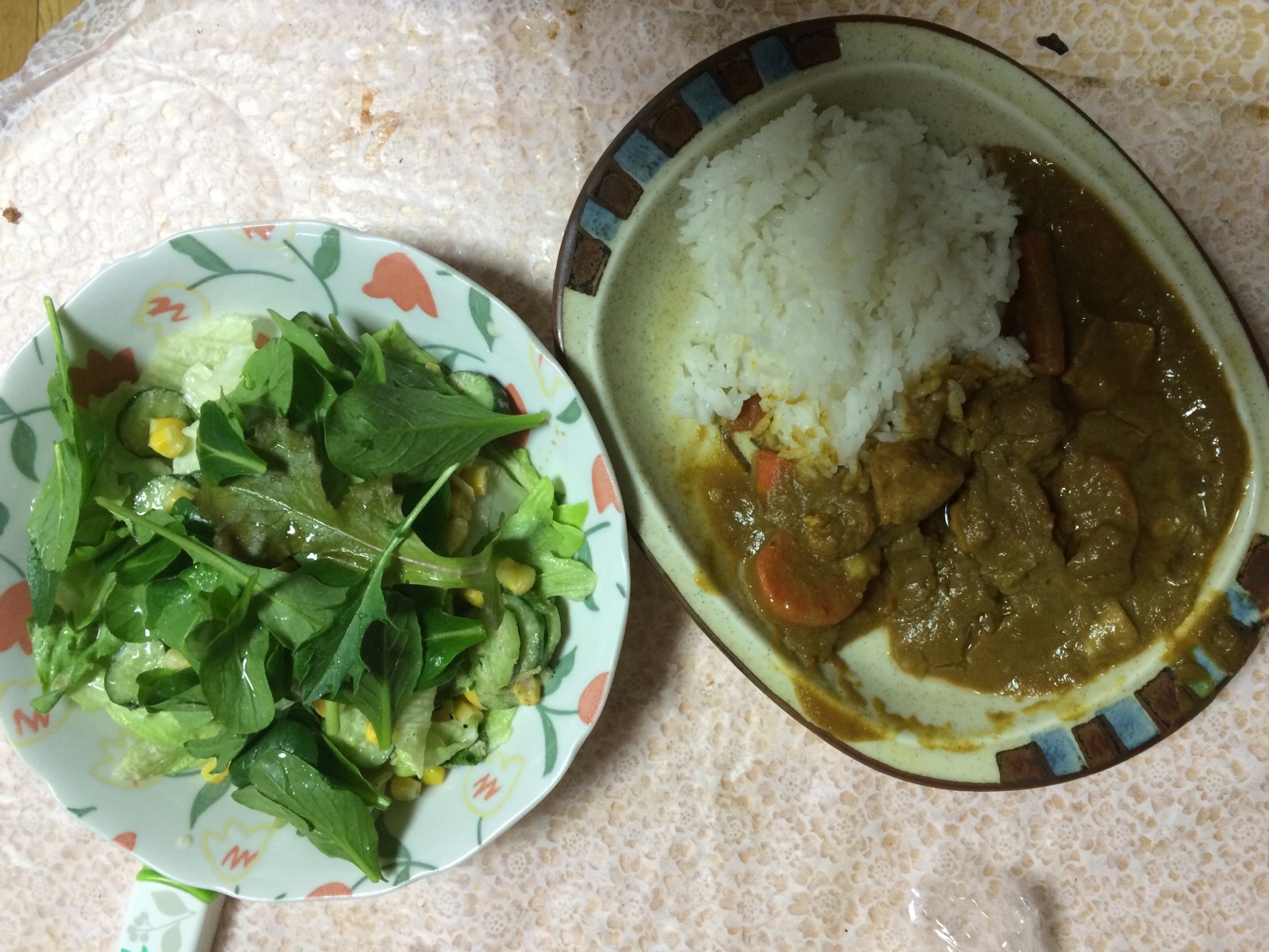 今日の夕食は昨日娘が残したカレー。娘はお刺身。 裏方テモテ
