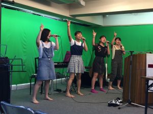 イスラエルちゃん、無事到着! 全員揃ったところで、マイクを使用して歌います!