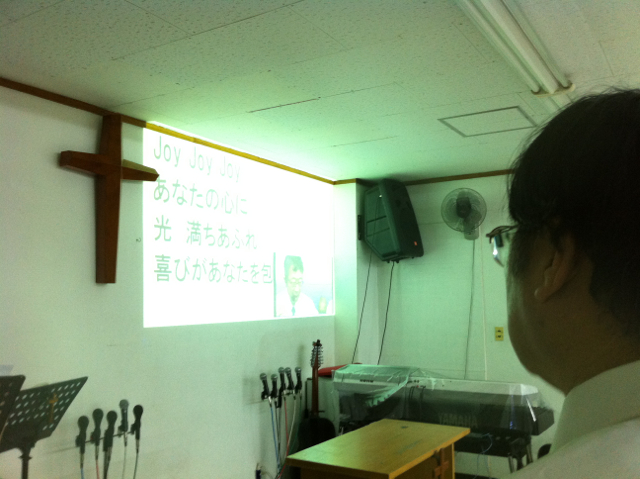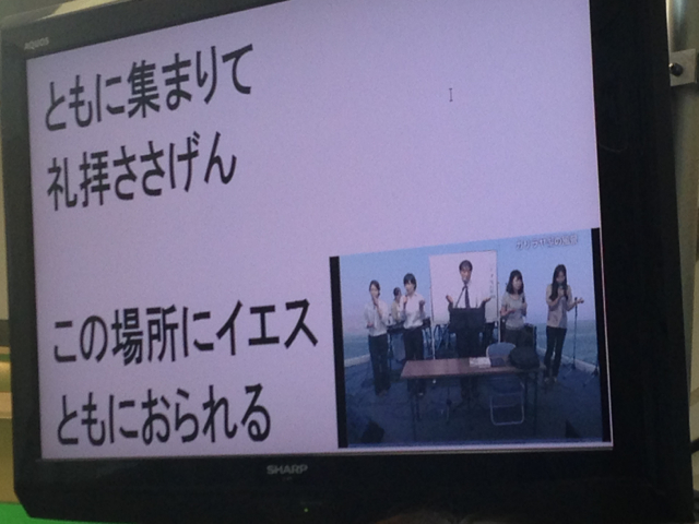 スネルゴイが始まりました。雲虹スタッフの横尾さんの姿が賛美チームの中に見えます。(荻原)