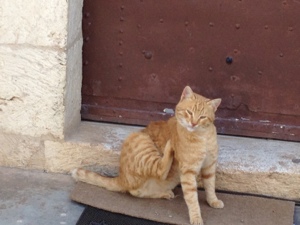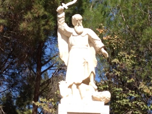 バアルのよげんしゃと、対決した預言者エリヤの像、高々と剣を、振り上げてます。可笑しかったのは、後ろで猫が、首をかいていました。 何回でも行きたいイスラエルチーム、派遣また、ちかづいています。 おおの