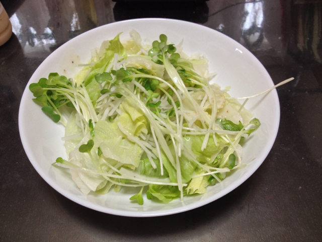 午前中は断食だったので、やっと食事ができます。 健康を考えてまずはお野菜から… imamura