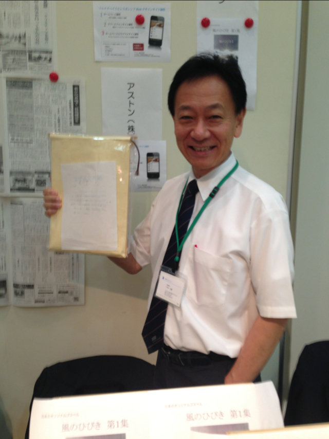 この首にかけてる紐(?)の色で、メーカーさんか、書店さんか、一般の方か、区別をします。 私たちは、緑。