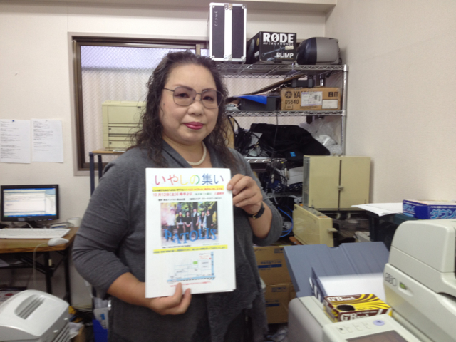 来月10月12日のいやしの集いのポスターを印刷するまどかまこ牧師。何でも準備が早い!Kato
