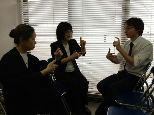 第3礼拝後は、色々なクラスが。こちらは手話クラス。星野さんが講師です。「2013年10月28日からイスラエルチームが遣わされます」というのを学んでいます。Kato