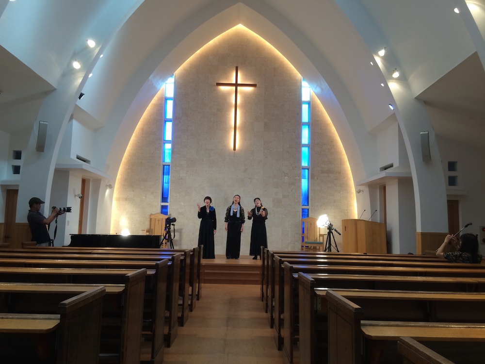 ゴスペルグループ〝エルサレム〟の写真を撮っているヒロトさんです(先日のことです)。The Visionのwebsiteや宣伝材料として使われます♪明日もヒロトさん参加です^^