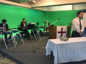 聖餐式の時。Truthのジョセフ前田さんが導きます。