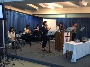 メッセンジャーの直美さん、賛美を導きます。