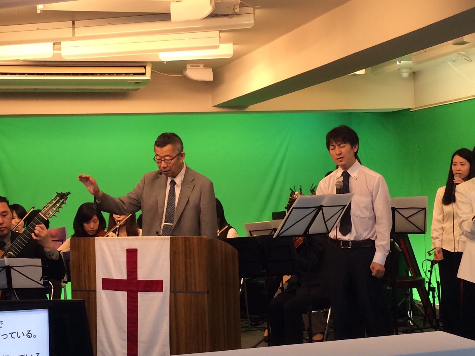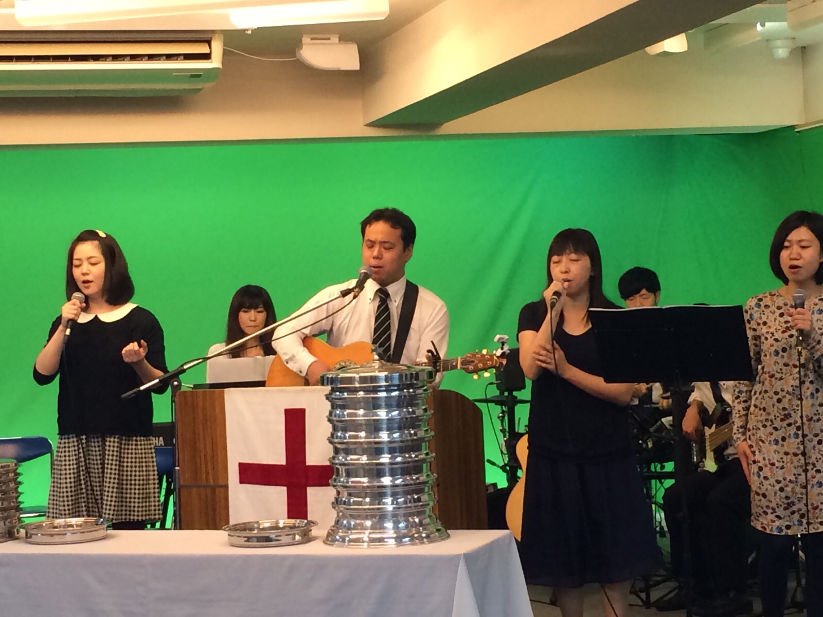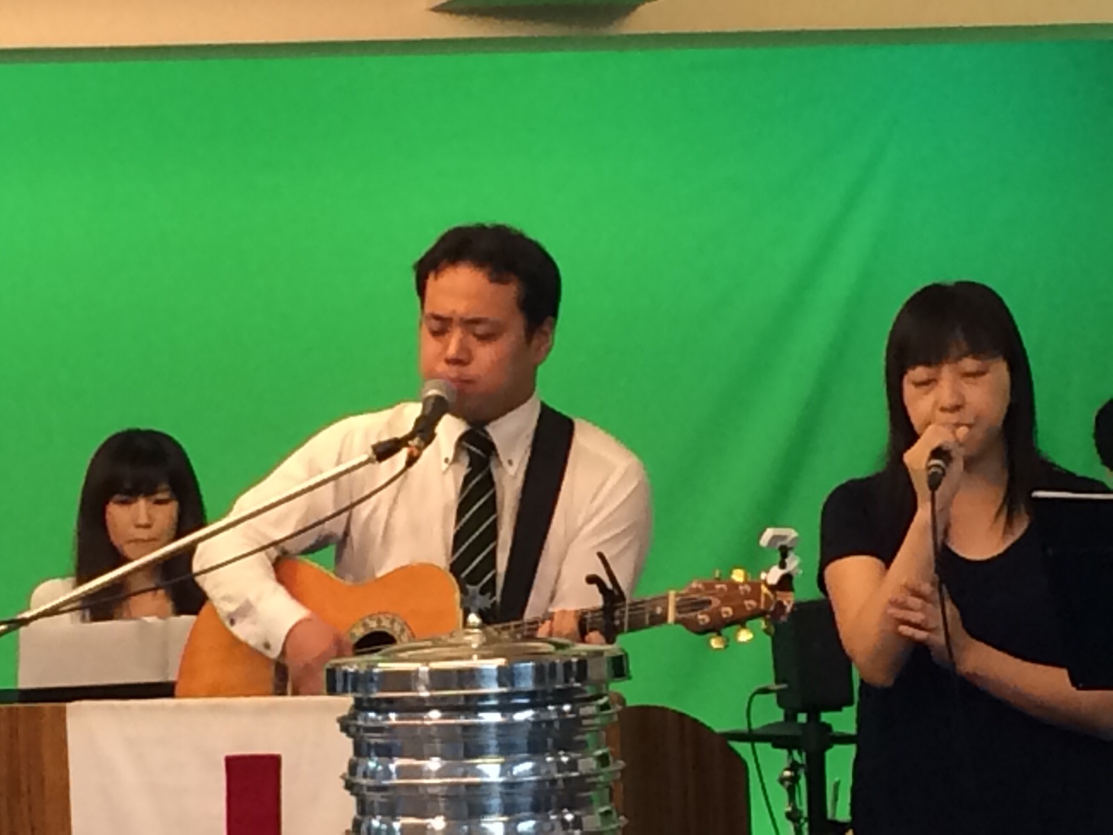 日曜第一礼拝がスタート! 賛美リーダーはジョセフ前田さんです。