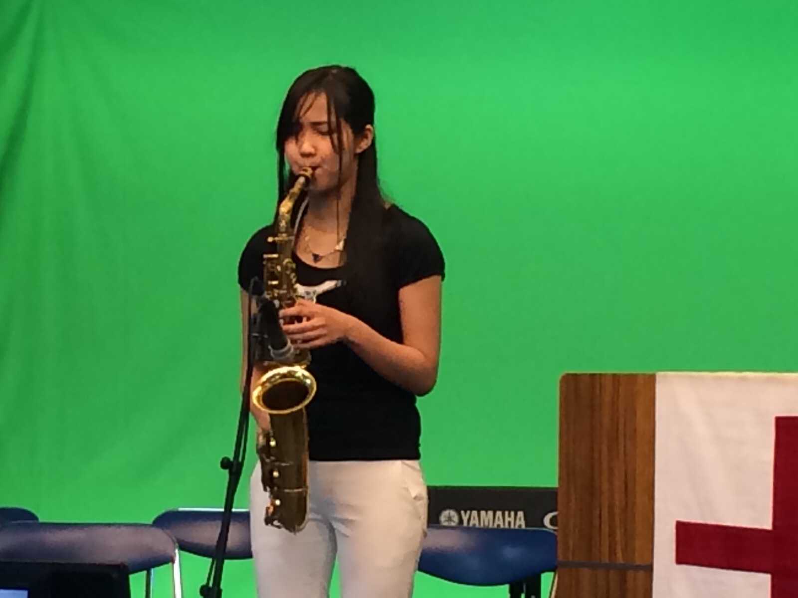 今日の第一礼拝の特別賛美はさらちゃんのサックス演奏です。 曲はスターライト。