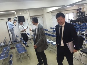 秋元さん、到着されました! 益川さんとお話しています。