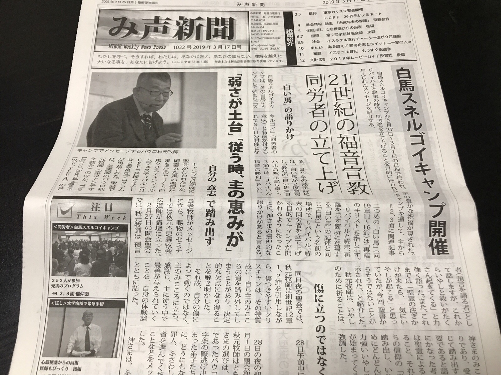 新しいみ声新聞が届いていました。まだ読めていませんが、白馬スネルゴイキャンプの恵みを再び思い起こさせる見出しです!
