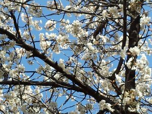 アパートの側の桜が満開でした。毎年、可愛いサクランボがいっぱい実ります!(^^♪