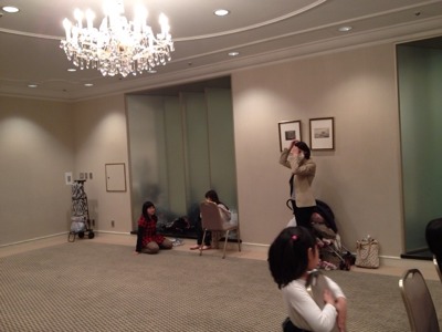 子どもたちの会場はこちら。シャンデリアの下で走り回っています!