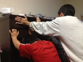 家族がタンスを抑えていて…『そこまで揺れてないでしょうー』と言いながら爆笑してしまいました(^.^)