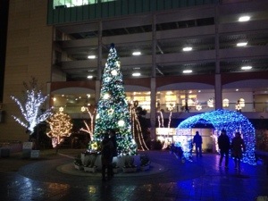 京都カリスマ聖会が行われる会場前は、夜になるときれいにライトアップされています。