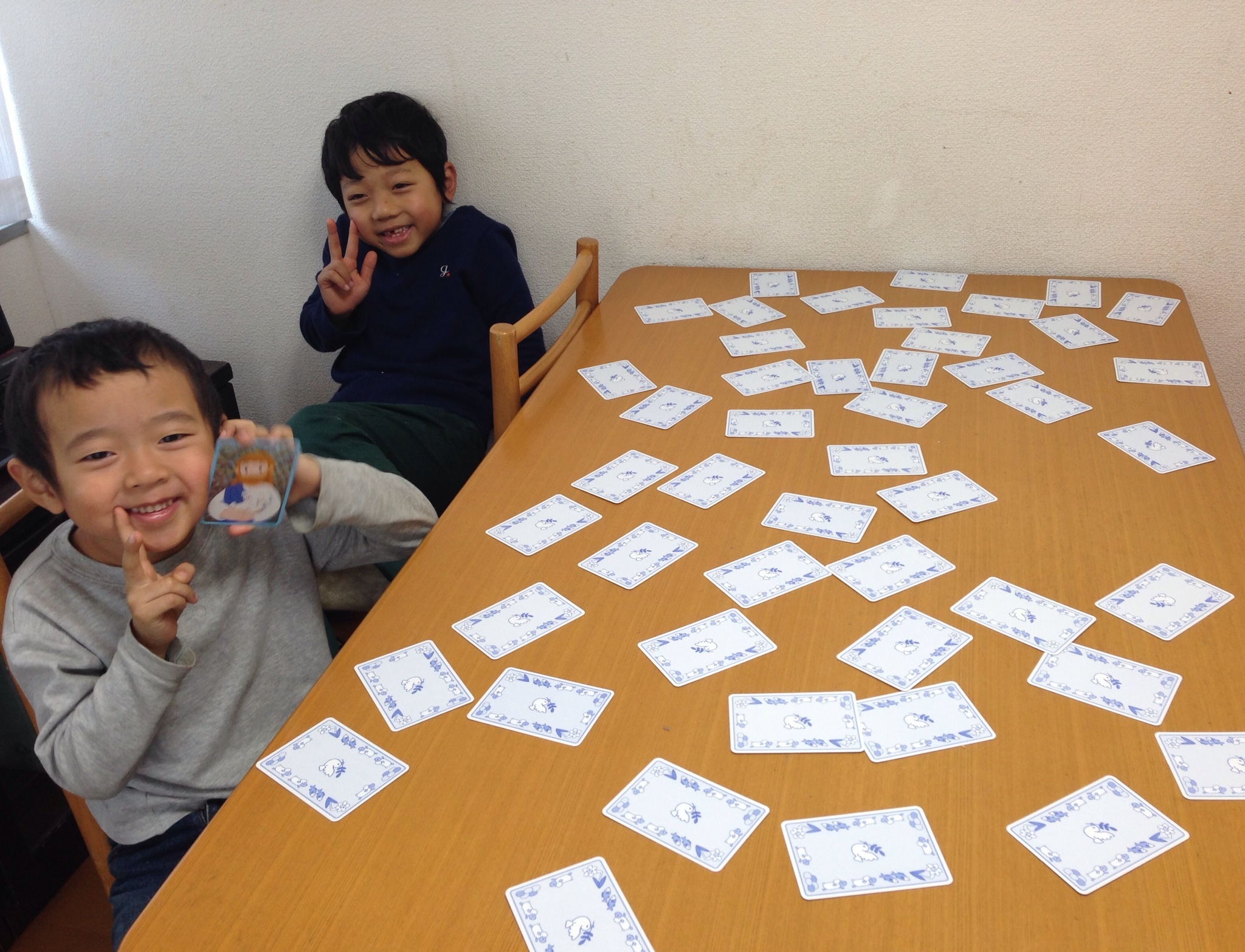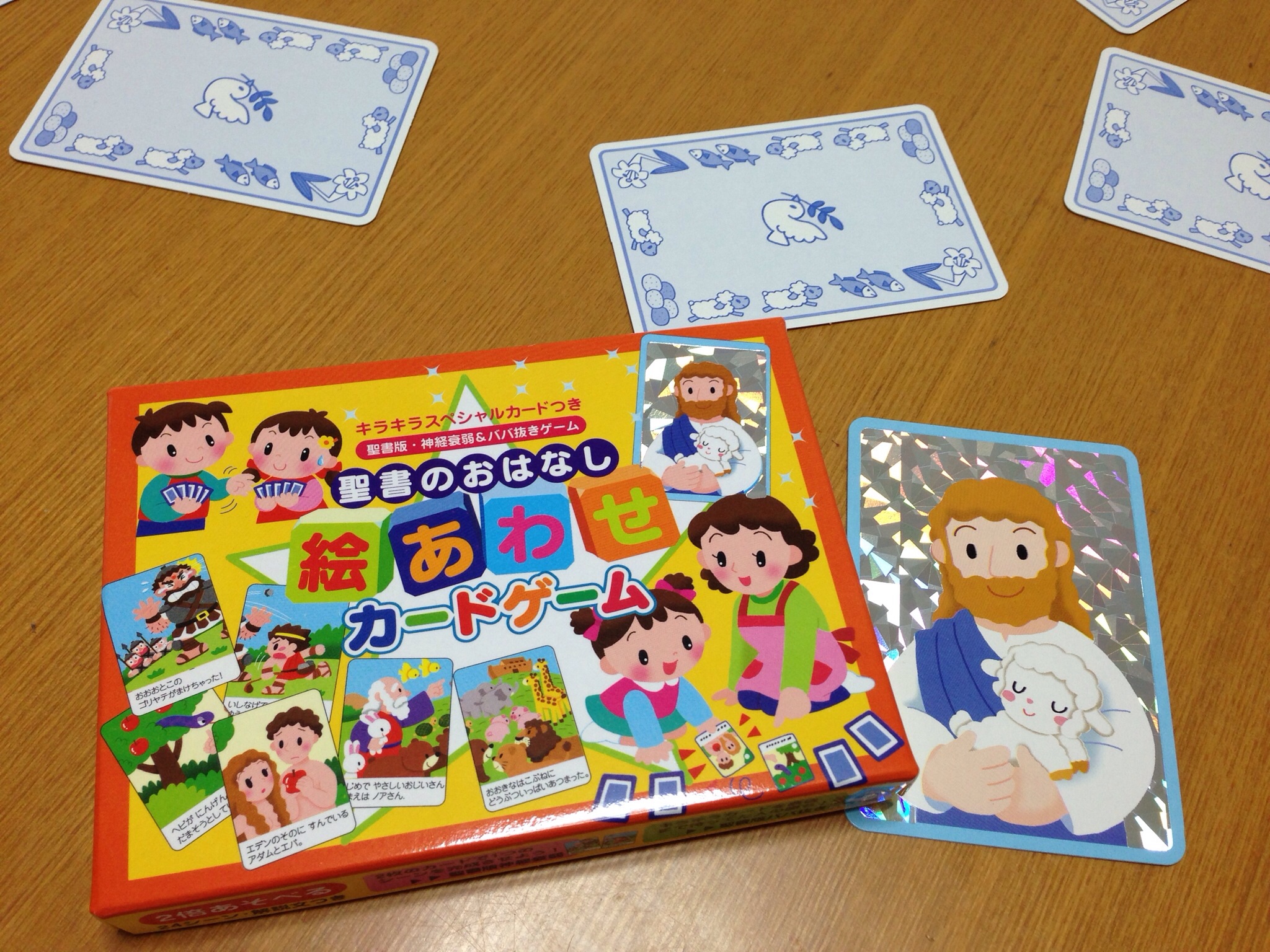 今日はお休みの子供たちです。 聖書のおはなしのカードゲーム で遊んでます!