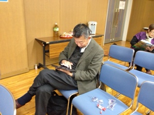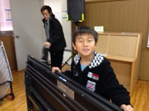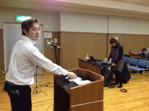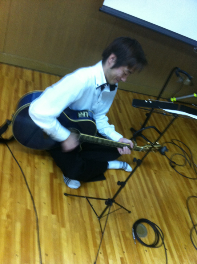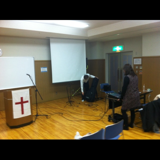 兵庫教会から機材を借りて、PA調整中!