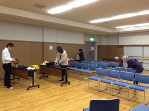 大阪カリスマ聖会会場に着きました。セッティング中です。 john