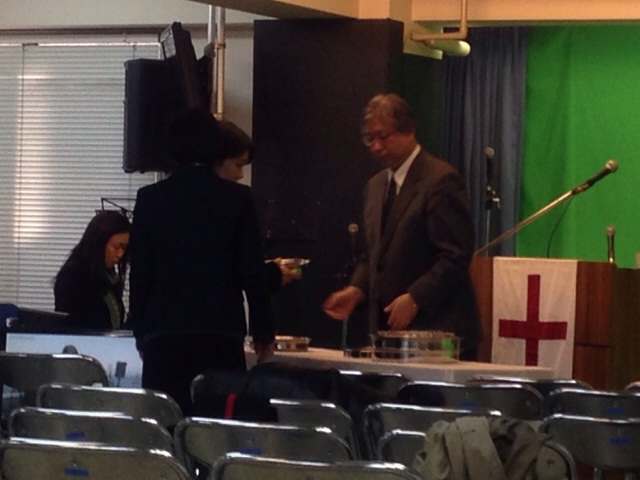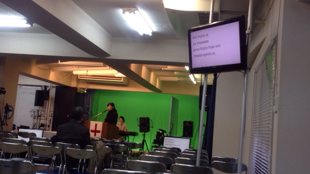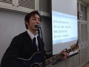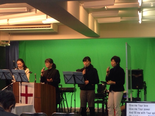 インターナショナル礼拝が3時からはじまりました。英語で賛美の時。
